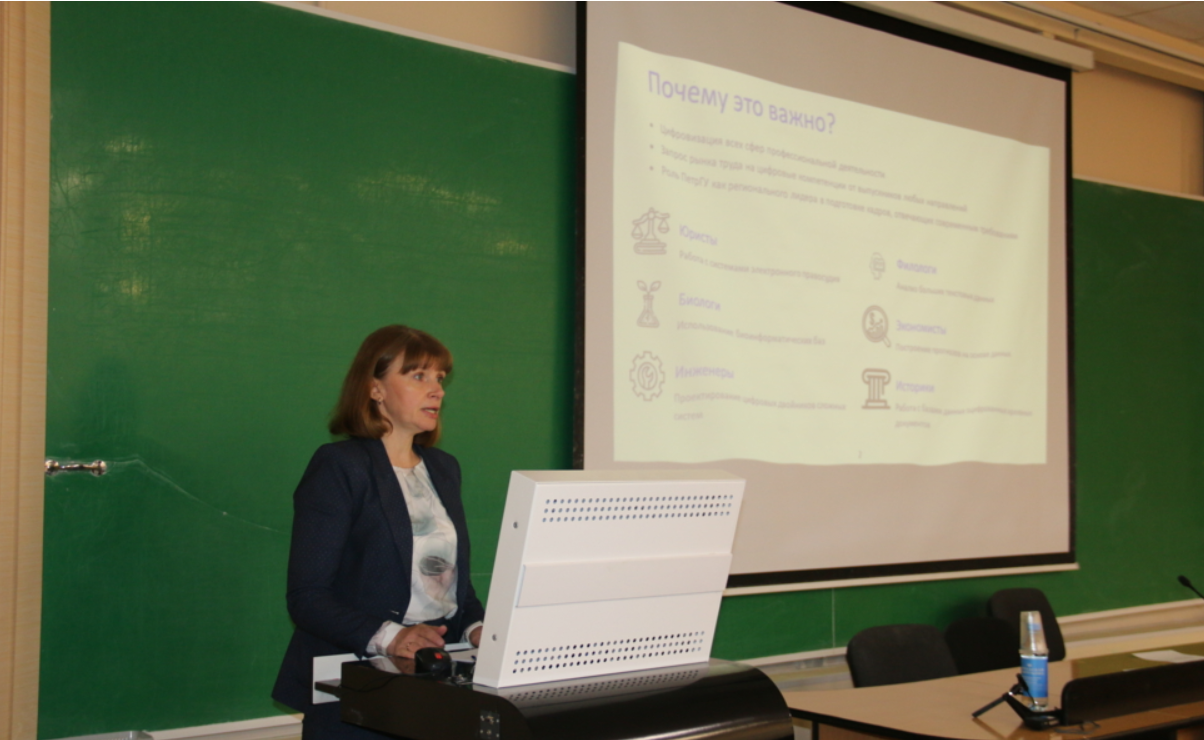26 ноября на заседании Совета ПетрГУ проект. представила Директор ИМИТ Н. Ю. Светова. Цель проекта -. модернизация содержания и методов преподавания IТ-дисциплин на. непрофильных направлениях ПетрГУ, направленная на формирование. у студентов системы универсальных и предметно-ориентированных. цифровых компетенций для эффективной профессиональной. деятельности. Подробнее.